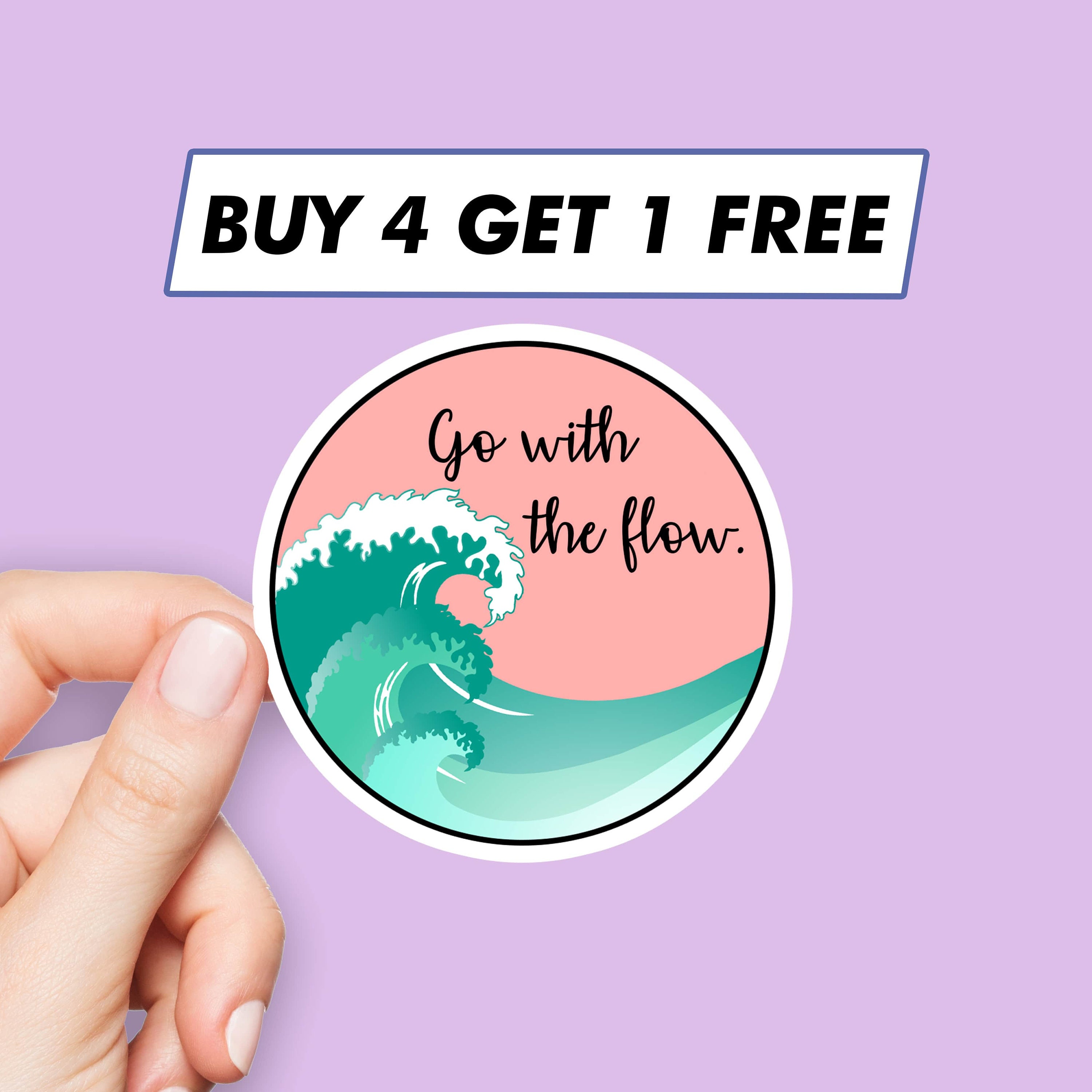 Motivational Go With The Flow Sticker Great Wave Saying Etsy